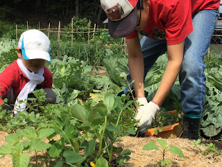 今日彼たちはトンボやカエルやドジョウなどの生き物が安心してすめる環境つくりのお手伝いをしました。こういう所で出来る作物は安心して食べられますよね。